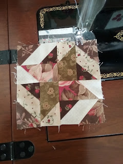 So what have I been doing this past month ,  just trying to keep up with my Splendid Sampler blocks plus some star blocks I am doing along with Darlene of a Needle Pulling Thread quilt shop . I have manged to keep up with both except this latest SS block , don't think i will do that one , I just don't like PP and especially on that small a scale so may try to draft it out for applique or simply  leave it out .
