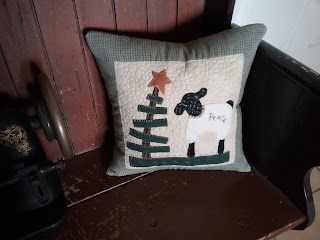 Finally I will share my finish for today , hmm can't remember when I started this one but the pattern was part of a blog hop a couple of years ago and the sheep is done with wool . I had decided right away I would make a pillow with this and had the pieces all sewn together but didn't have it quilted . I started to quilt it a couple of weeks ago and just did around the sheep etc then the crazy idea of doing pebbles came into my head to fill in the background. I think my brain was full of pebbles when I decided to do that . I did it in shifts between sewing my sashing strips strips for my BOM. This is not a big pillow, only measure 14" but these little pebbles took me forever. They are far from perfect , I don't do a lot of FM quilting but felt a pillow was more doable for me so even though it took me so long I think it was worth the time and effort and only I know how imperfect those pebbles are, oops I just told you , oh well , you already know i am not perfect lol .